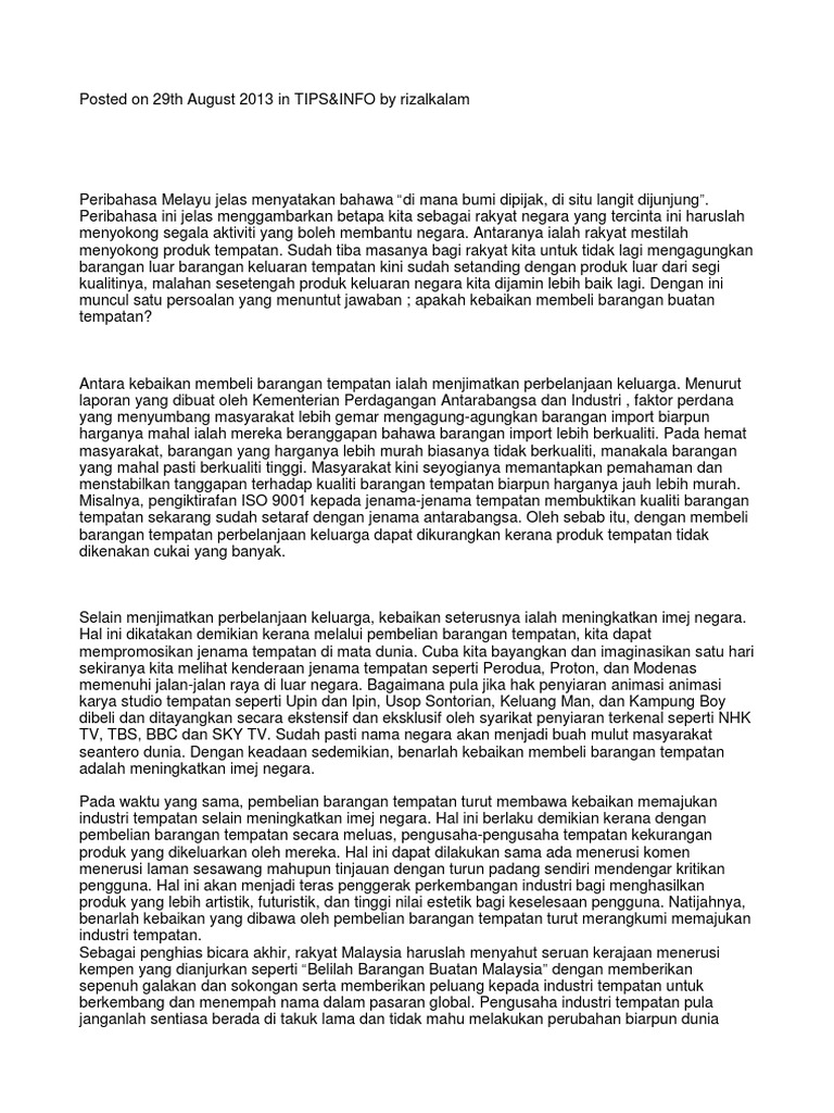 Contoh Karangan Spm Kebaikan Membeli Barangan Buatan Tempatan