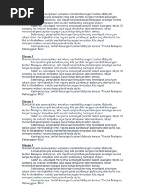 Karangan Bahasa Melayu SPMPT3. Faedah Membeli Barangan Buatan Malaysia. Oleh itu kepentingan dalam membeli barangan buatan Malaysia perlu diuar-uarkan dan dipergiat bagi membuka mata rakyat tempatan agar mereka tidak menganaktirikan produk sendiri.